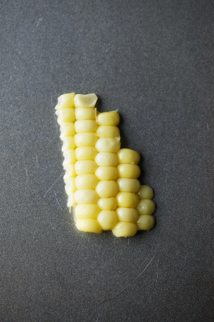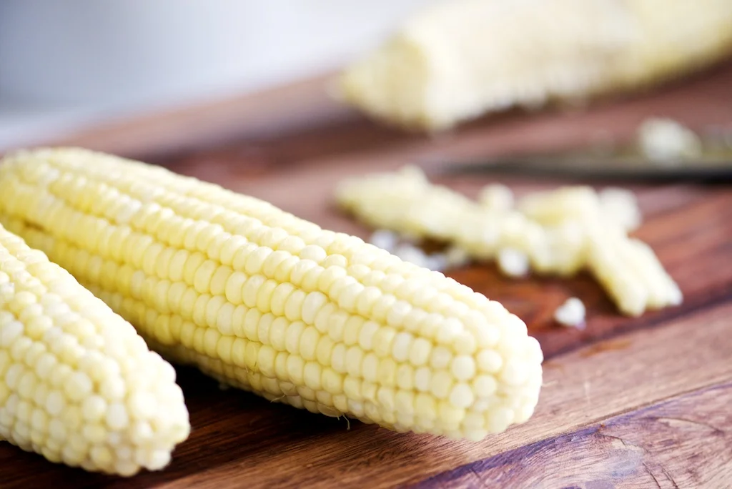 Husk the corn and place in large pot of water covering the ears, bring to boil, reduce heat to a simmer and cook for about 10 minutes or until it smells good (this is the only way I know how to cook corn is by smell), set aside to cool.