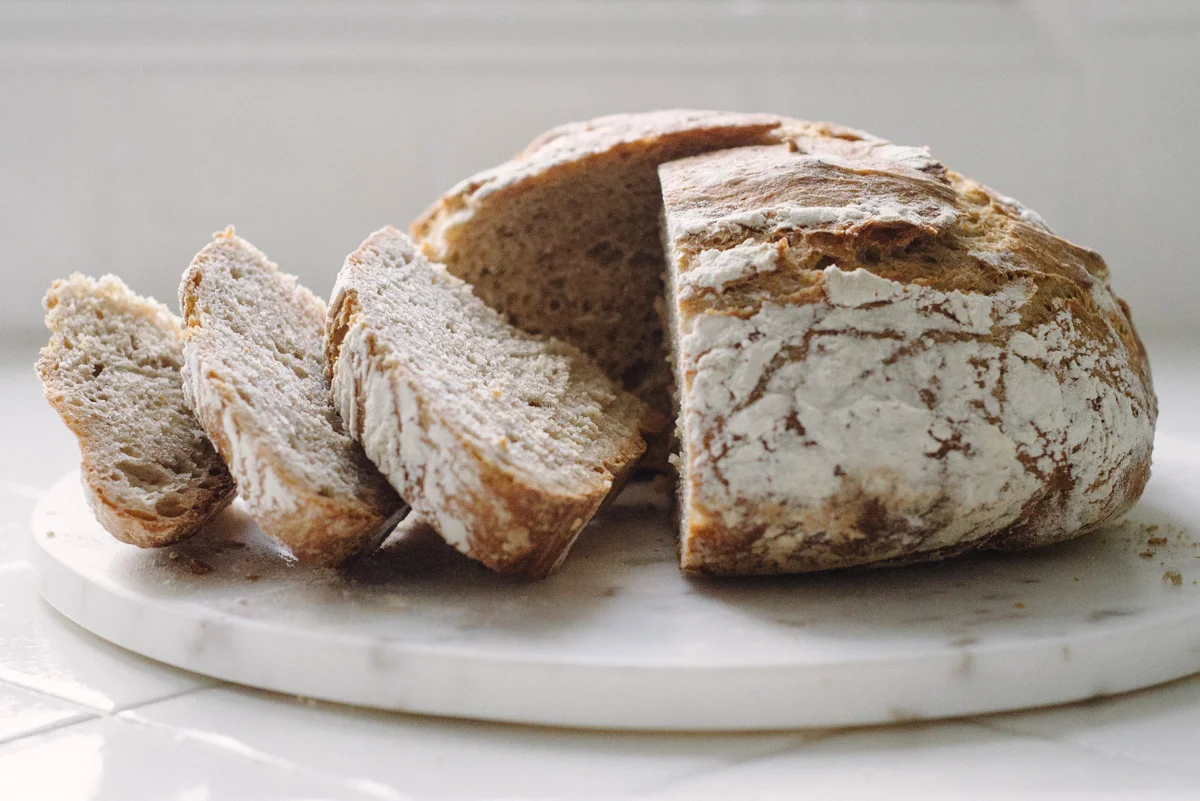 /Flour. Water. Yeast. Salt. With all the variations of bread out there it’s kind of amazing how these simple ingredients can create such magic. We’ve been making No-Knead Bread for a few years now, and I got a boost of inspiration recently at Trifecta where they serve a small sampling of breads (I think they do that to get you hooked!) This recipe is a variation of No-Knead bread. It includes whole wheat and rye flours. The ratio of flour to water really impacts whether the bread is airy or dense. The more water the lighter the bread, more holes like a ciabatta. This recipe created a slightly more dense bread than the original no-knead bread, but it came out really nice with a crunchy crust. I found a great website, Penni Wisner, that has quite a few variations on this style bread, she says you can mix any kind of flour as long as you keep it to 20 ounces of flour. Although I do like the original version which calls for 3 cups of flour and that measures out to around 13 ounces in weight. Since different flours will yield different weights it’s good to use a scale rather than measuring in cups. The great thing about this bread is that it is incredibly easy to make. Just a few minutes here and there within a 24 hour period, most of the time it’s either rising or baking.