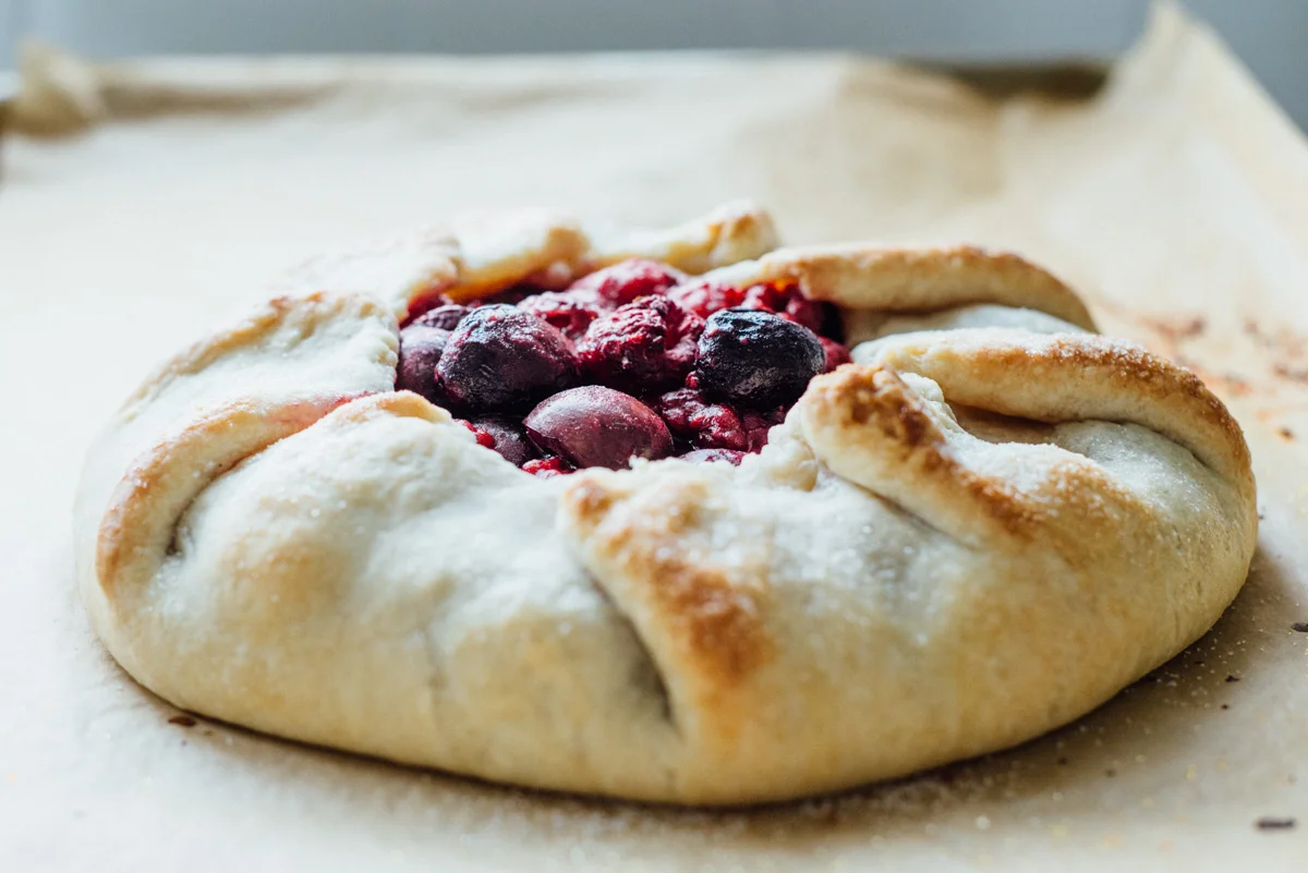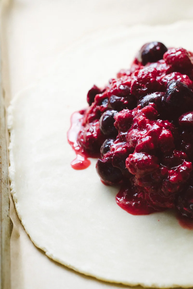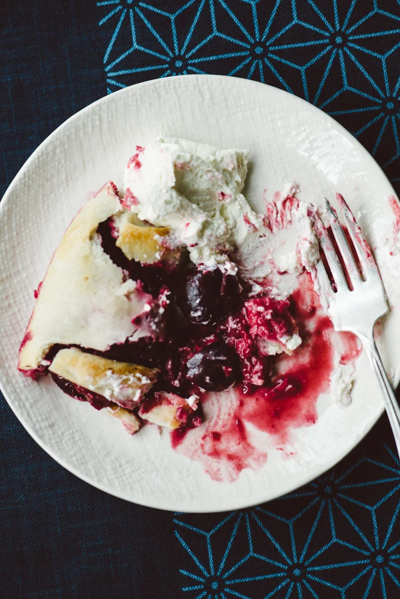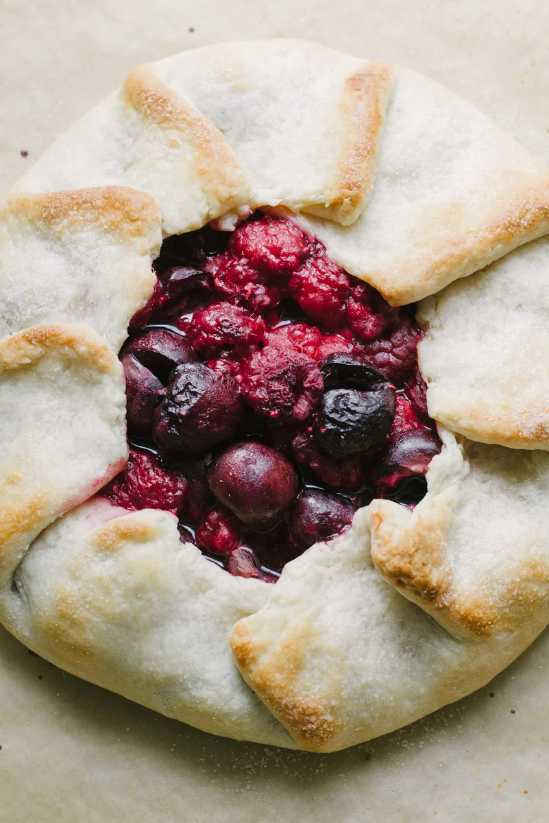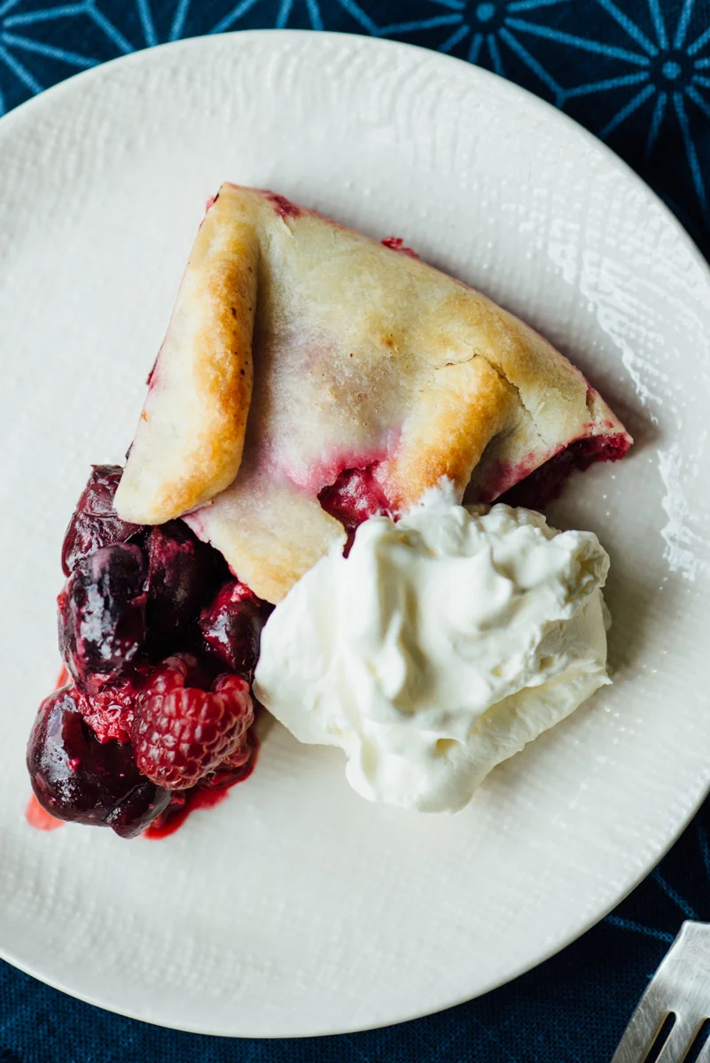 Galettes are a great way to put together a quick dessert, I love the rustic casual way they’re designed, not very fussy but pretty all the same. Oh, and the dough was a whole new experience for me. A few months ago we bought a food processor, I had been doing most of my mixing by hand or with the kitchen-aid, but that doesn’t work so well for cutting butter into flour so I would cut it by hand which was a lot of work, so this week was my first time making pie dough with the food processor and, wow, just wow, in seconds I had my dough made. I was blown away. The dough recipe is for two pie crusts, it’s nice having one in the freezer ready to go.