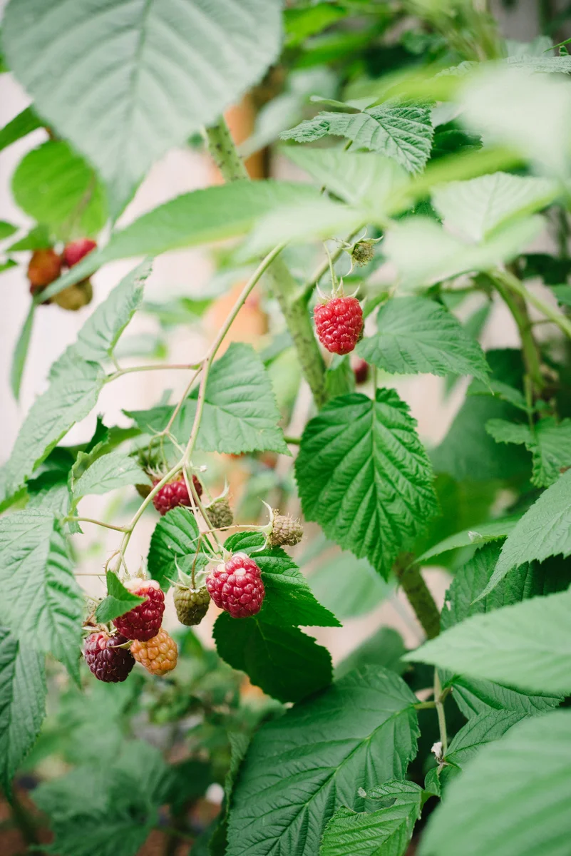 /It’s that time of year here in Portland where our yard becomes a (humble) bounty of berries. When we moved here two years ago we were lucky enough to discover raspberry bushes, blueberry bushes and a strawberry patch. Last winter we pruned the raspberry and blueberry bushes and it seems to be paying off. They’re producing more and better berries. The blueberries are just starting to ripen and it looks like we’ll have a sizable harvest soon. And even though its been two years now in a house with a yard, the novelty has not worn off, it still feels very special to this former city apartment dweller.