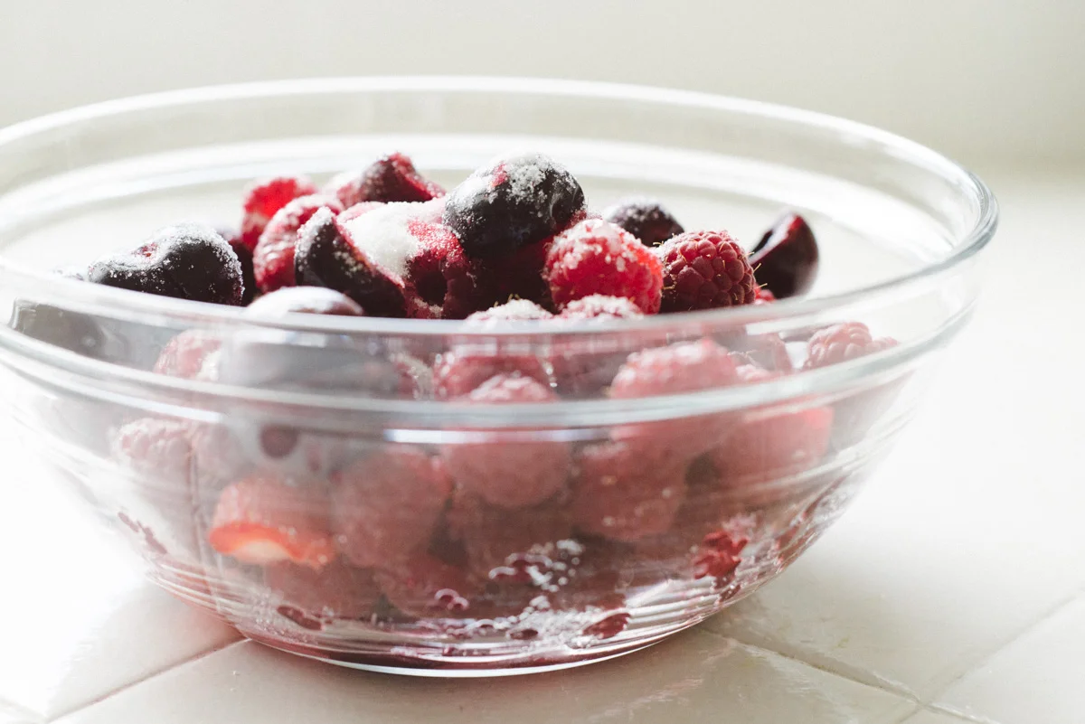 - 4 cups of berries and cherries (I used 2 cups raspberries and 2 cups cherries)